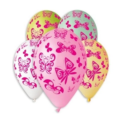 Nafukovací balónky s potiskem motýlků dodáváme v mixu fialové, zelené, žluté, růžové, tyrkysové a bílé barvy. Průměr 30cm, 5ks v balení.