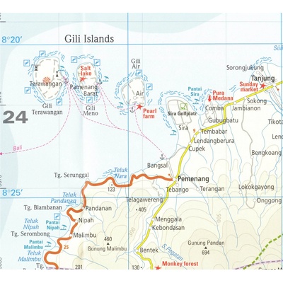 Nebenkarten und Stadtpläne:§§Denpasar 1: 20,000 Stadtplan§Gili Islands (Gili Trawangan, Gili Meno, Gili Air) 1: 55,000 Detail- / Übersichtskarte§Kuta / Legian 1: 20,000...