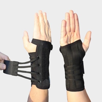 Ortéza na zápěstí s výztuhou Catell Lacy levá černá, délka 20 cm hliníková tvarovací dlaha 2 vyndavací dorsální spirálové dlahy vyndavací loketní vinuté dlahy šněrovací vázání...