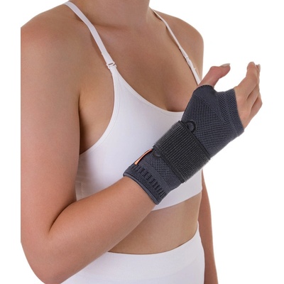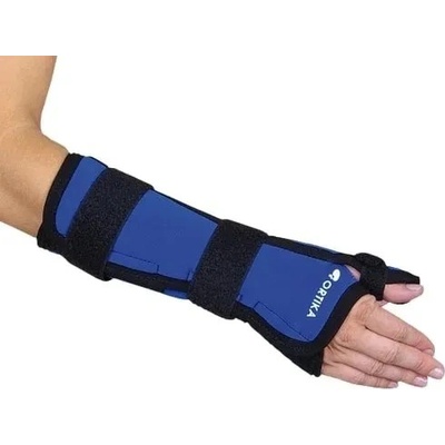 Delší varianta ortézy k fixaci zápěstí a přídavné fixaci palce. Na vnitřní straně a zápěstí je duralová dlaha, která je vyjímatelná a tvarovatelná. Stejně tak je duralová dlaha...