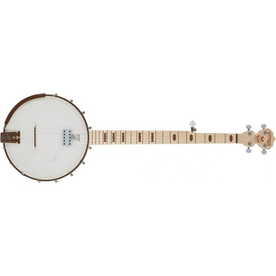4-strunné Bluegrass banjo de luxe s kovovým bubnem. Tělo z mahogonu, buben z kovové celolité slitiny, 30 nosných háčků (plochý typ), vrchní blána Remo(TM) 11" s bílým potahem,...