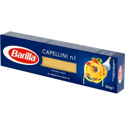 Výrobce: Balení: Barilla Těstoviny Capellini 500 g Barilla Těstoviny Capellini 500 g. Capellini je bývalá forma těstovin pocházející ze severní střední Itálie. Ruční výroba vyžadovala mimořádné dovednosti a byla symbolem velké sofistikovanosti. Capellini mají tvar...