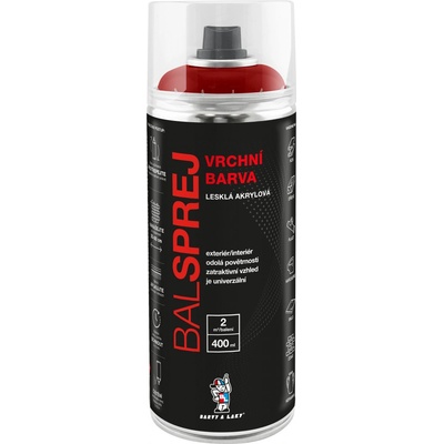 Barva ve spreji vrchní akrylová 400ml Balsprej Univerzální vrchní lesklá akrylová barva ve spreji pro nátěry dřeva, kovu, skla, betonu, kamene, karoserie a některých umělých...