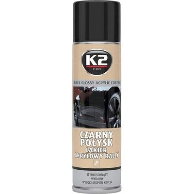 Akrylová barva ve spreji K2 Černý Lesk 500ml Rychleschnoucí černá akrylová barva s vysokým leskem. K vnějšímu i vnitřnímu použití. Vhodná pro nátěr kovu, dřeva, plastů,...
