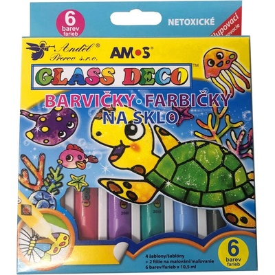 Barvy na sklo děti milují. Kreativní zábava pro kluky i holky. Děti budou s nadšením tvořit krásné barevné obrázky a k tomu mohou využít i šablony, které jsou součástí balení....