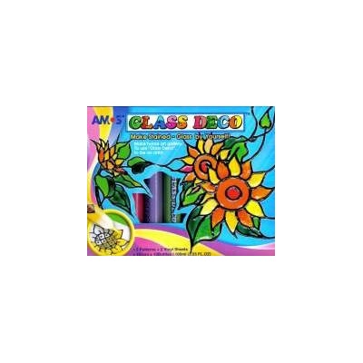 Sada Glass Deco obsahuje : 5 šablon + 2 folie na malování, 10 barev / 10,5 ml + 1 kontura / černá / 10,5 ml. Netoxické.