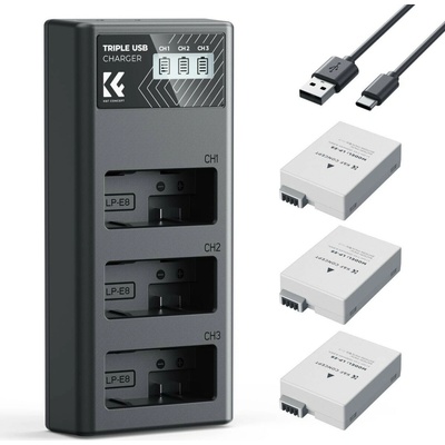 Dvě náhradní baterie LP-E8 s kapacitou 1200 mAh a dvouslotová nabíječka poskytují více energie pro fotografování. Plné dekódování, kompatibilní s fotoaparáty používajícími...