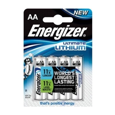 Baterie Energizer Ultimate LITHIUM FR6 AA 4 ks Baterie Energizer Ultimate LITHIUM FR6 AA 4 ks baterie AA s nejdelší vydrží v hi-tech přístrojích na světě vydrží až 7x déle v digitálních fotoaparátech (ve srovnání s alkalickou baterií, záleží také na typu...
