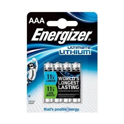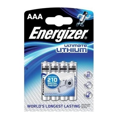 Lithiové baterie Energizer Ultimate Lithium FR03 (L92, AAA) 4 ks alternativní označení: AAA, L92, FR03, lithiová mikrotužková baterie napětí: 1,5 V baterie určené k velmi náročným provozům extrémně pomalé samovybíjení baterie AAA s nejdelší výdrží v high-tech...
