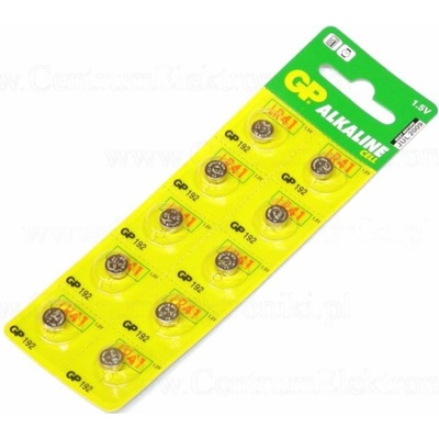 typové označení GP 192F (LR41, V3GA) chemické složení alkalické kategorie/řada Alkaline cell napětí 1,5 V možnost nabíjení ne jmenovitá kapacita 24 mAh (při zátěži 6,2 kOhm) hmotnost neuvádí se rozměr 7,9 × 3,60 mm prodejní obal 5 ks, blistr