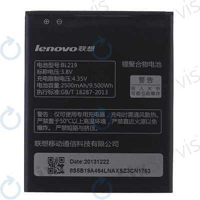 Originální baterie Lenovo BL219 s kapacitou 2500 mAh typu Li-Ion určená pro mobilní telefony Lenovo A768t, A850+, A889, A916, S856.
