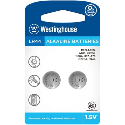 Westinghouse alkalická knoflíková 1,5V baterie LR44, blistr 2 ks