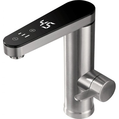 Páková stojánková dřezová baterie s elektrickým ohřevem vody v nerezovém provedení. Průtok baterie je 1,79 litrů/minutu. S matným povrchem.