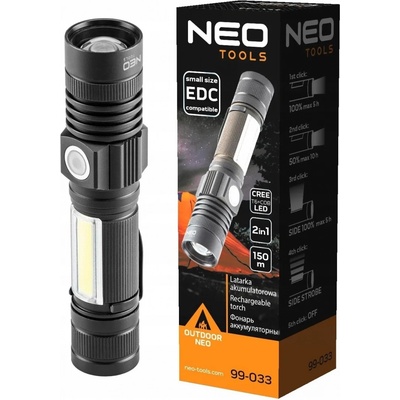 Nabíjecí svítilna 2 v 1 Neo výkon 10 W, max. 800 lumenů, dosah 150 m, LED Cree T6 + COB, IP20, baterie 2000 mAh 3,7 Li-ion, nabíjení přes USB, USB kabel součástí balení, doba...