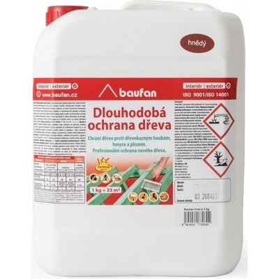 BAUFAN DLOUHODOBÁ OCHRANA DŘEVA. Popis: Velmi účinný vodou ředitelný přípravek určený k dlouhodobé ochraně dřevěných stavebních konstrukcí a prvků zabudovaných v interiérech...