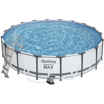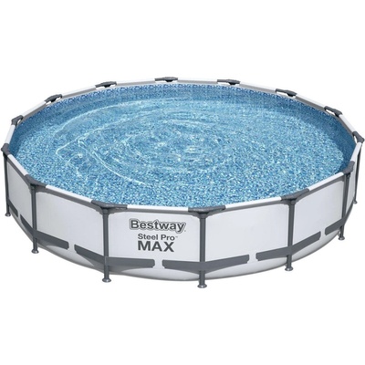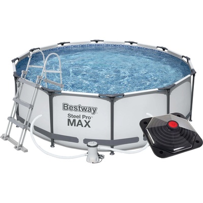 Bazénová sada obsahuje: bazén s konstrukcí Bestway Steel Pro Max 3,66 x 1 m, kartušovou filtraci 2006 l/hod, bezpečnostní schůdky, pyramidový solární ohřev.