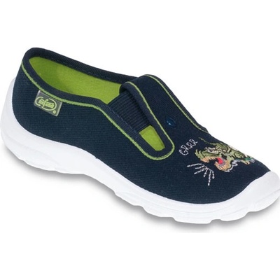 Tmavě modré chlapecké bačkůrky Befado Danny 975X165 s obrázkem draka mají pevnou vyztuženou patu, lehkou pružnou a odvětranou podrážku. Špička je dostatečně široká pro volný...