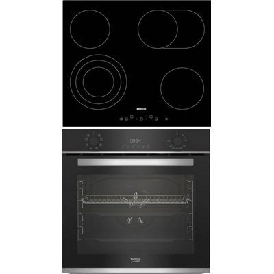 Set spotřebičů Beko se sklokeramickou varnou deskou a vestavěným odsavačem - trouba BBIM13300X, deska HIC64404T, odsavač CTB6407X