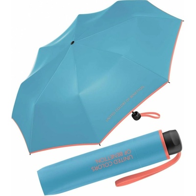 Dámský skládací deštník Benetton Super Mini turquoise 56307 tyrkysový Kvalitní značkový deštník United Colors of Benetton - to je pravá italská móda. Skládací deštník s manuálním otevíráním. Deštník je v tyrkysové barvě s modrým okrajem a logem " UNITED COLORS OF...