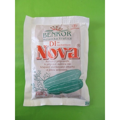 Benkor DI Nova se sacharinem, nálev na okurky, 108 g Benkor DI Nova se sacharinem je hotová směs určená k přípravě sladkokyselého nálevu pro zavařování okurek a jiné zeleniny....