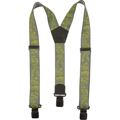 BENNONKY FISH BRACES GREEN, šle Nastavitelné univerzální šle se širokým popruhem s rybářským potiskem. Jste hodinový manžel, milovník dřeva a kladiva, nebo jenom příležitostný...