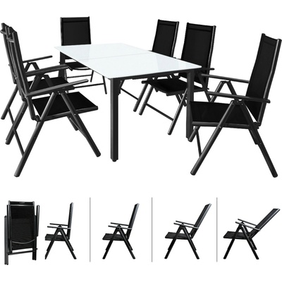 Zahradní hliníková sedací souprava Bern 7dílná | antracit Exkluzivní 7dílná zahradní sada Bern z hliníku se stolní deskou z vysoce pevného bezpečnostního skla, skládací židle s...