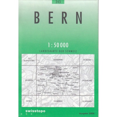 Jednostranná topografická mapa Bern a okolí od vydavatelství Swisstopo, bez turistického značení a znaků. Výškopis pomocí stínovaného reliéfu a vrstevnic po 20 metrech,...