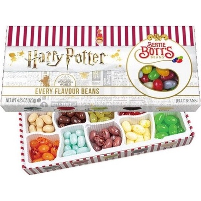 Je neuvěřitelné, čím se lze živit v Bradavicích. Harry Potter Bertie Botts dávají nahlédnout i do velmi nezvyklých příchutí: banán, černý pepř, borůvka, šušeň, cukrová vata, třešeň, skořice, špína, žížala, ušní maz, tráva, zelené jablko, marhsmallow, shnilé vejce,...