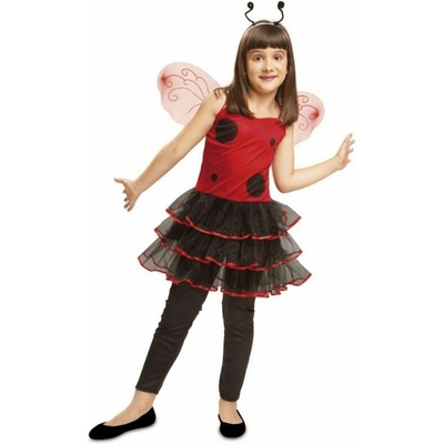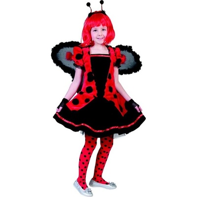 Dětský kostým - Beruška obsahuje: puntíkované šaty opasek křídla tykadla na čelence. Velikost: 116 cm.