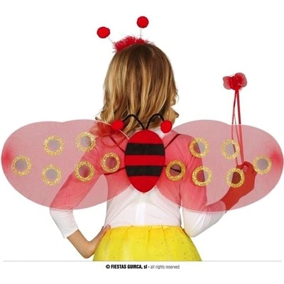 Dětská sada beruška (křídla, tykadla a hůlka) Detaily produktu: - křídla se nasazují pomocí gumiček - na křídlech jsou zlaté třpytky - pružná čelenka - pro děti i...