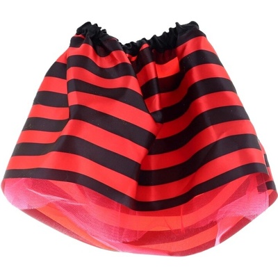 Dětský kostým Beruška v červeno-černé barvě, šaty tvořené velurovým topem a tylovou sukní doplňují odnímatelná křídla s puntíky a čelenka s černými tykadly, velikost 116-128...