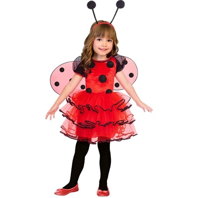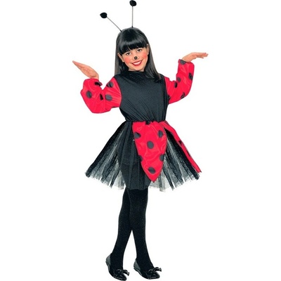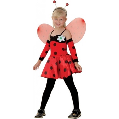 Karnevalový kostým s motivem berušky, vhodný pro dívky od 5 do 9 let, ideální výška 120 až 130 cm, obsahuje křídla, čelenku do vlasů, návleky na ruce a šatičky, součástí dodávky...