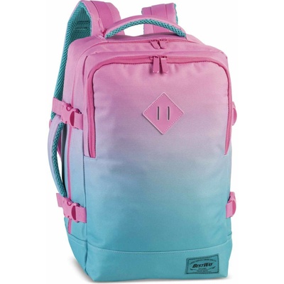 Cestovní multifunkční textilní batoh německé značky Bestway cabin pro v zajímavém ombré přechodu barev ryrkysové v růžovou barvu s ideálním rozměrem pro leteckou společnost...