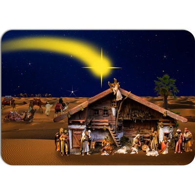 Vánoční prostírání s krásně zpracovaným motivem betléma zachycuje příchod Tří králů do pouštní krajiny pod jasně zářící kometou. Tradiční scéna s ručně vyřezávanými figurkami a...