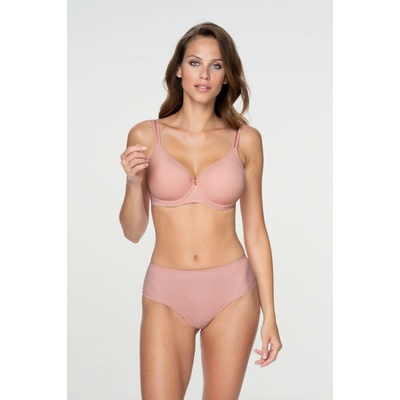 Hladká bezešvá podprsenka z velmi pevného materiálu, který ňadrům dodá dostatečnou oporu. Podprsenka má vyšší střed, zpevněná ramínka a zadní část z pevného přitom pružného...