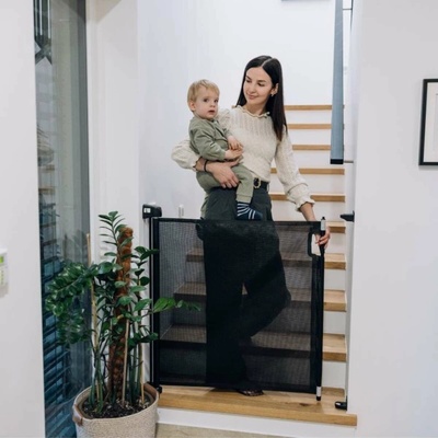 Bezpečnostní zábrana na schody Nukido s magnetickým uzávěrem Ochranná bariéra od Nukido se montuje s dilatačními spárami bez nutnosti vrtání otvorů - nepoškodíte stěny ani...
