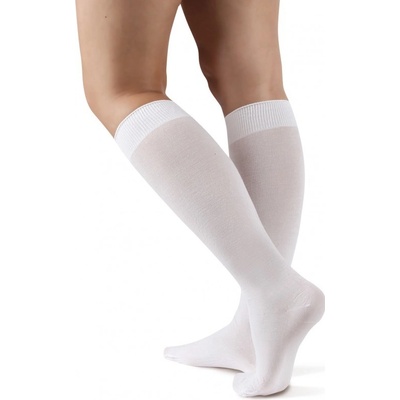 bílé bavlněné kompresní podkolenky 36-38 se zdravotním lemem a antimikrobiální úpravou s ionty stříbra Sanitized® pro podporu krevního oběhu a prevenci cestovní trombózy