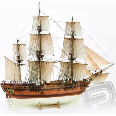 Detailně propracovaná neplovoucí maketa HMS Bounty z 18. století s dřevěným plaňkovaným trupem o délce 780 mm dánské firmy Billing Boats. Stavebnice v rozsypu v měřítku 1:50 pro zkušené stavitele.