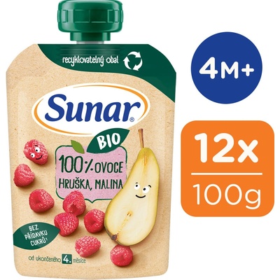 Sunar BIO kapsička hruška, malina je plná 100% vyzrálého a šťavnatého ovoce v nejvyšší BIO Baby kvalitě. Je vhodná pro děti od ukončeného 4. měsíce věku. Neobsahuje přidaný...