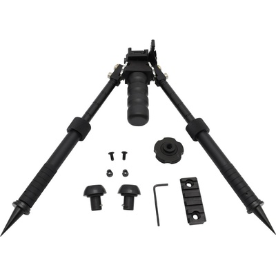 Taktická, skládací, těžká dvojnožka, která usnadňuje střelbu z polohy na břiše. Je výškově nastavitelný od 173 do 223 mm. Délka nohy 213 – 273 mm. Ploché odpory umožňují střelbu z měkkého (nestabilního) podkladu. Montáž na na Weaver/picatinny 21mm na předjíždí zbraně....