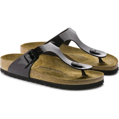 Moderní tanga sandály značky BIRKENSTOCK. Gizeh je skutečná klasika s charakteristickou podporou a rafinovaným minimalistickým stylem. Zobrazeno v zábavném a lesklém patentu...