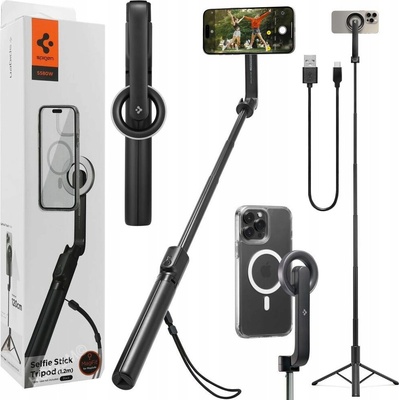 Skládací Tripod Spigen S610W s režimem Gimbal, dálkovým Bluetooth ovládáním a ochranným pouzdrem pro bezpečné přenášení. Vyrobeno v kombinaci hliníku a pevného plastu. Spigen...
