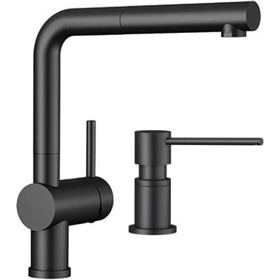 1. Stojánková kuchyňská baterie Blanco Linus-S černá 525807 - výška baterie: 28,4 cm- vysoký tlak- vytahovací výtok- požadovaný průměr otvoru pro baterii 35 mm- flexibilní připojovací hadice s maticí 3/8"- keramická kartuše- tryskový regulátor snižuje usazování vodního...