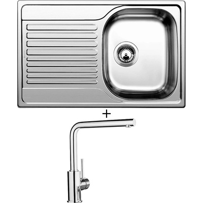 Cenově zvýhodněný set dřezu a baterie Blanco 04 - D - obsahuje nerezový dřez s odkapem Tipo 45 S Compact Přírodní lesk a baterii Mila Chrom.