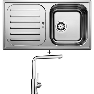 Cenově zvýhodněný set dřezu a baterie Blanco 05 - B - obsahuje nerezový dřez s odkapem Dinas XL 6 S Compact Kartáčovaný a baterii Mila Chrom.