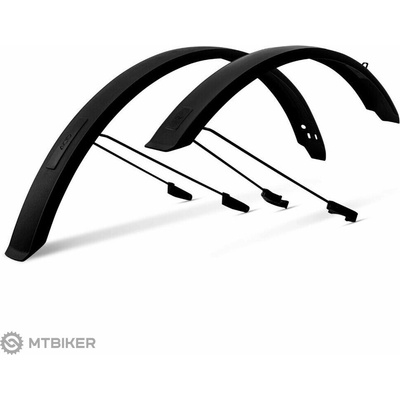 Přední a zadní blatník pro trekkingové a city kola. Vlastnosti: Materiál: technopolymerový pryskyřice. Hmotnost: 150g. Montáž: Přední - nastavitelná ocelová konzola tvaru L,...