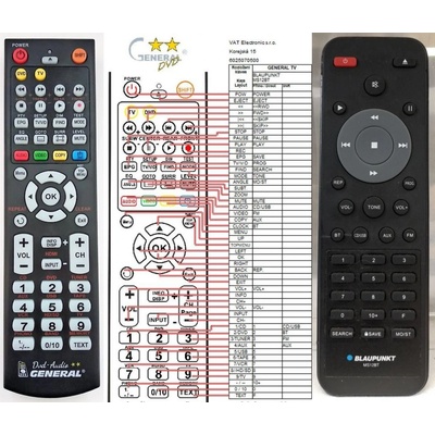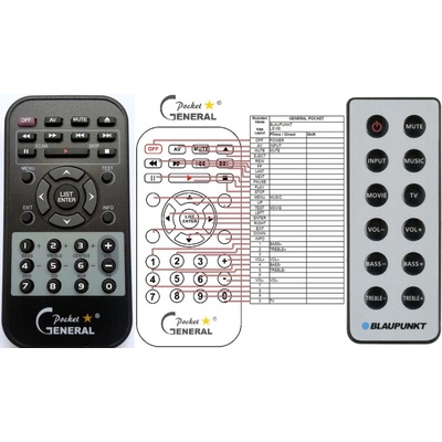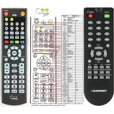 Náhradní dálkový ovladač Blaupunkt MS12BT - 100procent náhrada za originál. Pro modely: MS12BT Ovladač je dodáván ve verzi ovladače General DVD-TV (zobrazen...