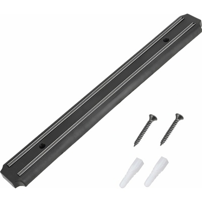 Elegantní držák na nože se silnými magnety, který bezpečně udrží nože na svém místě Vyrobeno z černého plastu s kovovými okraji Sada pro uchycení na zeď je součástí...