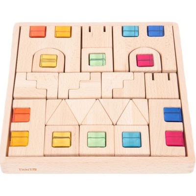 Křišťálový architekt Dřevěné a křišťálově barevné kostky jsou perfektní volbou pro děti, které milují stavění a zároveň sensory play. Tato sada obsahuje kostky různých tvarů a ...