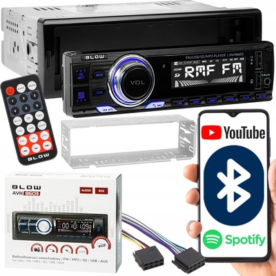 Autorádio BLOW AVH-8603 S autorádiem BLOW AVH-8603 si užijete spoustu skvělé zábavy. Přehrajte si své oblíbené MP3 soubory jednoduše přes USB nebo SD slot a nebo si připojíte vlastní přehrávač přes vstup AUX. Autorádio je vybaveno FM tunerem, možnosti zapojení MP3...